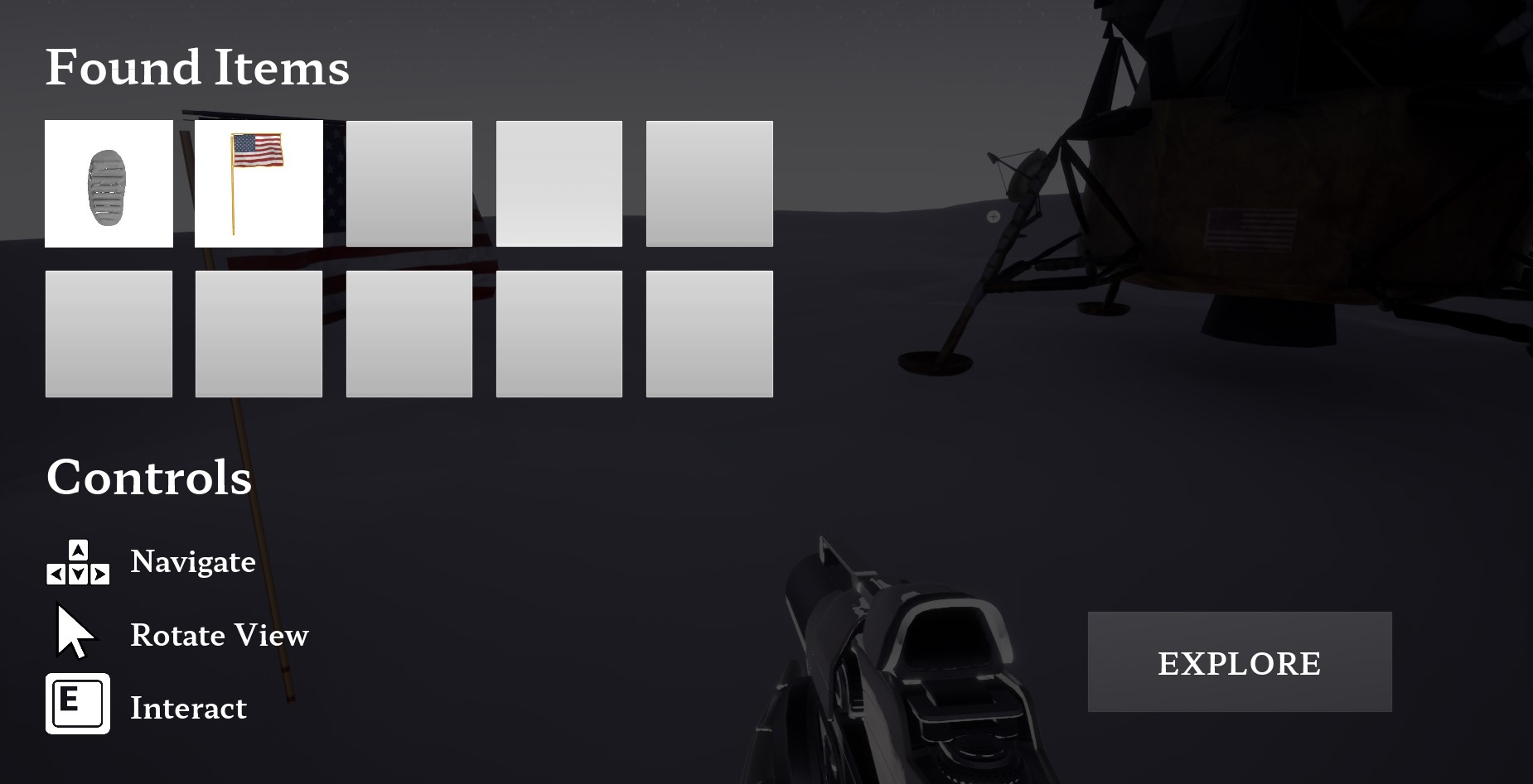 This Open World prototype, built around the Times’ Apollo landing assets, includes navigation controls and options available in Unreal Engine. The player moves around the space, interacts with and “collects” items in the 3D space, and views an inventory of found items with their descriptions.