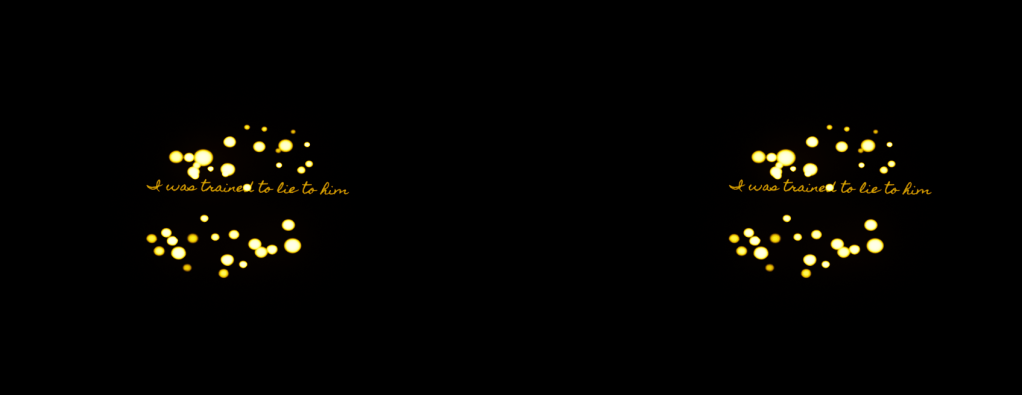 This Dynamic Audio prototype, built using a recording from one of the recent Modern Love podcast episodes, is conceptualized as an immersive/dynamic VR experience. There are two versions of this format prototyped for play. The first, subtitled “Dynamic Void,” positions the player/viewer at the center of a 3D void with 360-degree camera access. Periodically, as the player rotates their view around the space, dynamic illustrations appear at the point of the player’s gaze. The dynamic illustrations are currently represented by particle system placeholders, to show the movement quality of how dynamic illustrations should appear in a fully complete experience (without relying on the work of creating the dynamic illustrations for the prototype). In addition to the dynamic illustrations, 3D text quotations taken directly from the audio appear periodically in the 3D space, wherever the player is looking.